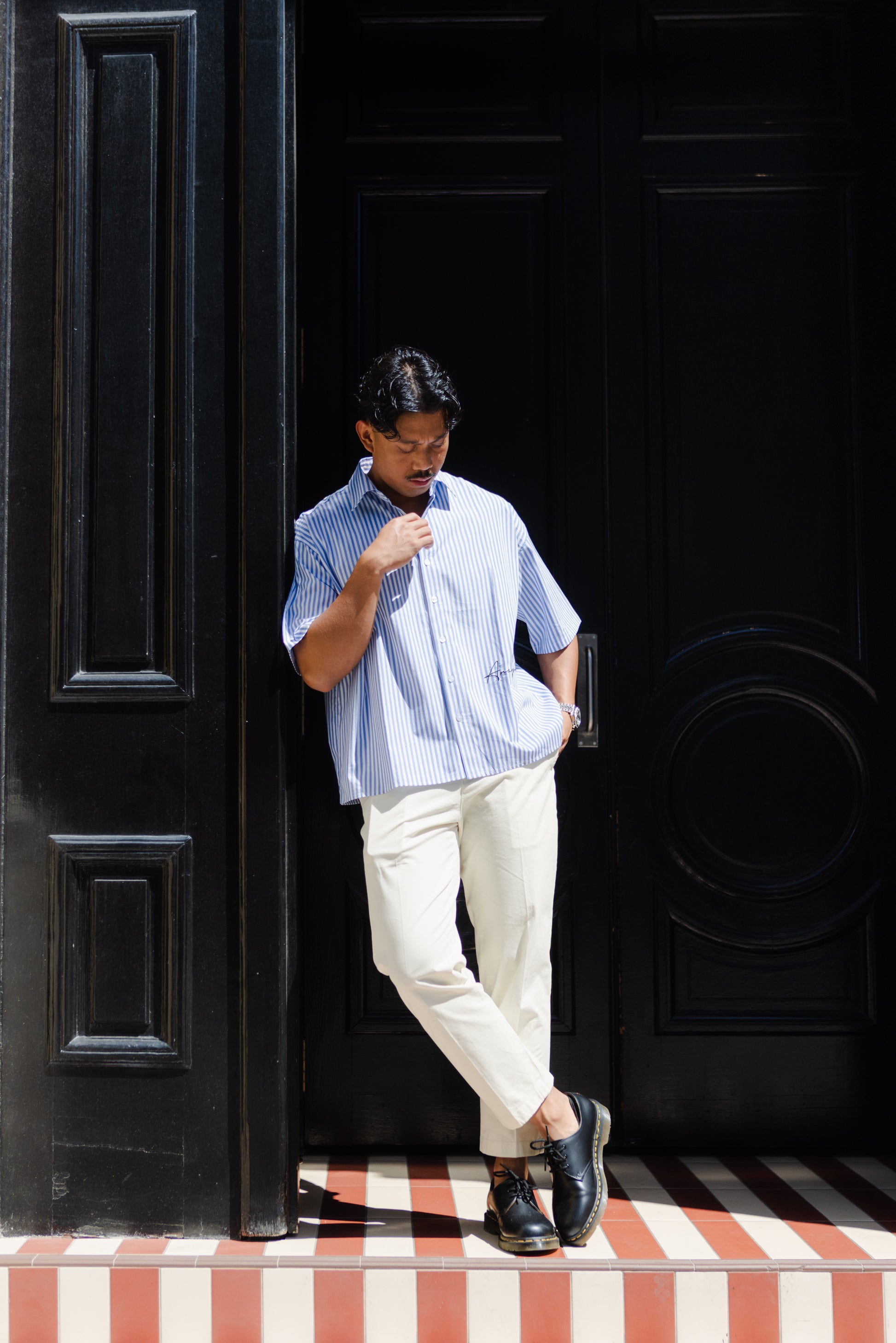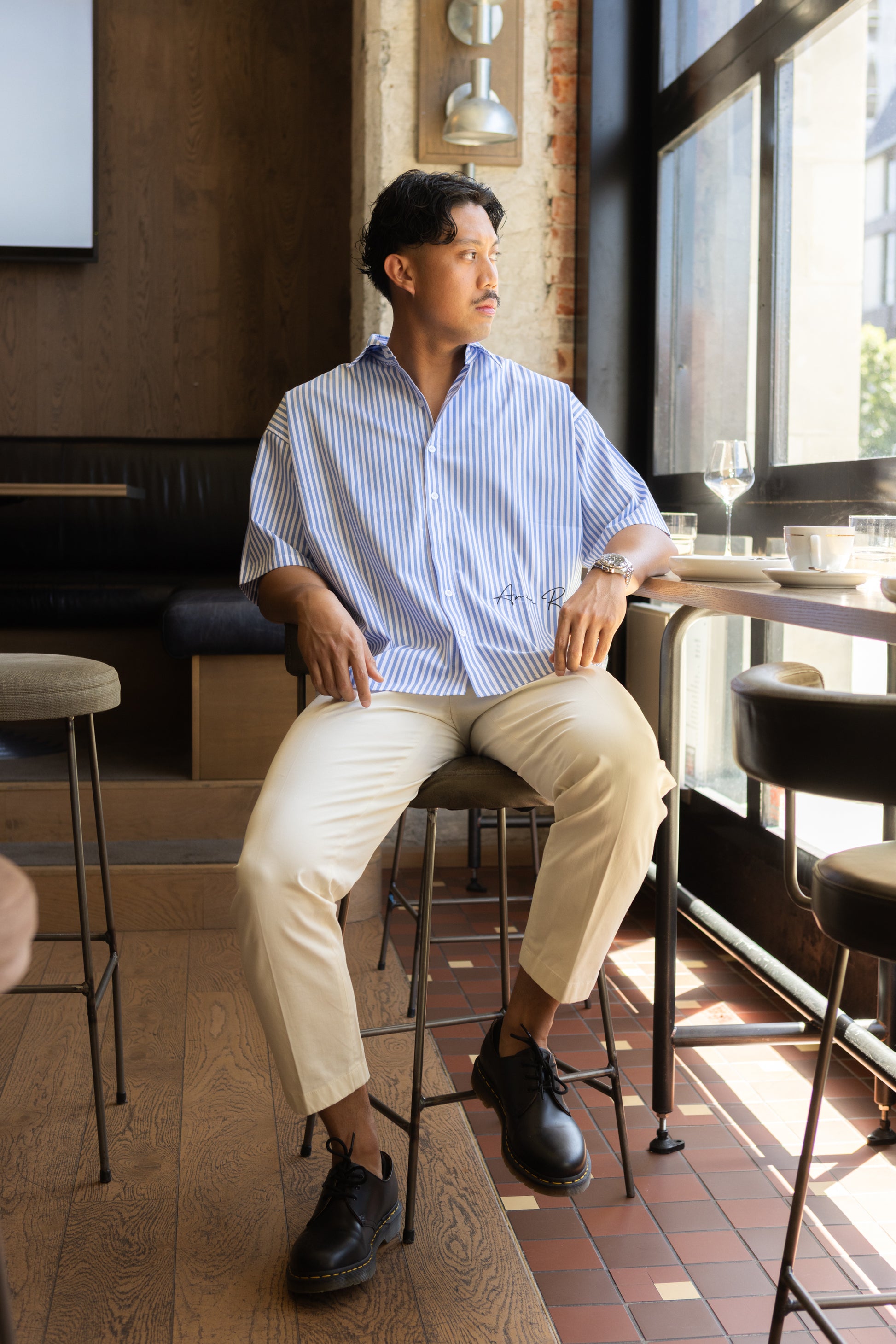 The Royale Bay Pinstripe Shirt blends timeless tailoring with modern streetwear sensibility. Crafted from 100% cotton, it delivers structure, comfort, cropped waist length and finished with classic signature embroidery mid front.